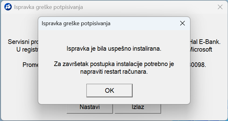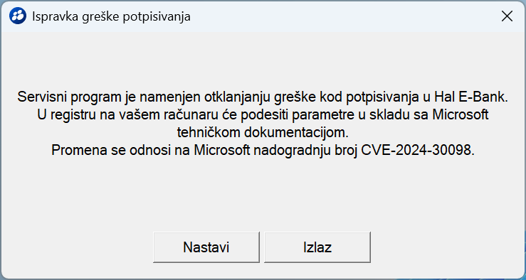Nakon poslednjeg ažuriranja Windows operativnog sistema, u Hal E-Bank aplikaciji se mogu pojaviti greške prilikom potpisivanja naloga ili paketa. U nastavku su koraci za otklanjanje grešaka.