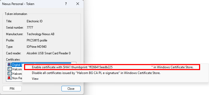 Kako da uklonim žuti trougao sa Electronic ID? Reference num. 10057 Views: 357 Почетак / FAQ / Kako da uklonim žuti trougao sa Electronic ID? Ukoliko u Nexus Personal aplikaciji imate žuti troguao preko „Electronic ID“, ispratite sledeće korake: 1 Levim dvoklikom otvorite Electronic ID 2 U donjem delu prozora koji se otvorio, na sve sertifikate koji imaju crveni trougao uradite desni klik/Enable certificate…