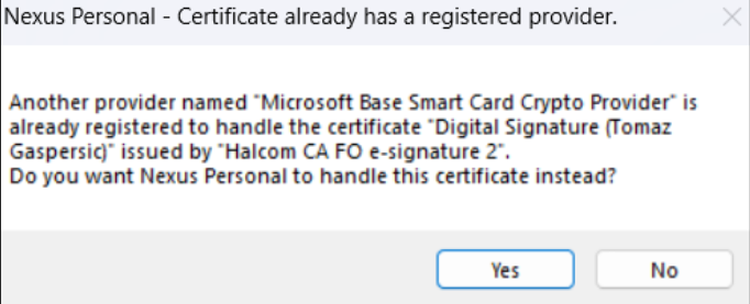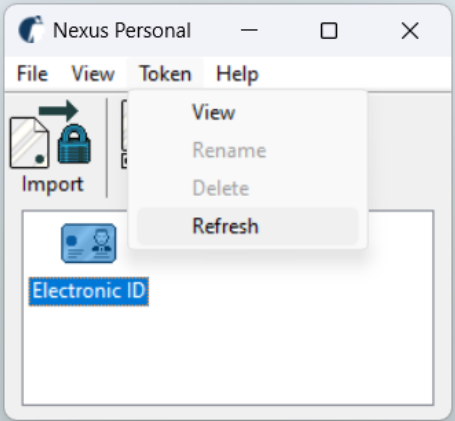Napaka pri podpisovanju paketa Referenčna št. 10007 Ogledov: 260 Domov / FAQ / Napaka pri podpisovanju paketa 1 Odprite program Nexus Personal v opravilni vrstici. 2 Desni miškin klik na Electronic ID in potrditev izbire Unregister Nexus Personal. 3 Vsa obvestila potrdite z YES. 4 Kliknite Token in izberite možnost Refresh. 5 Vsa obvestila potrdite z Yes.